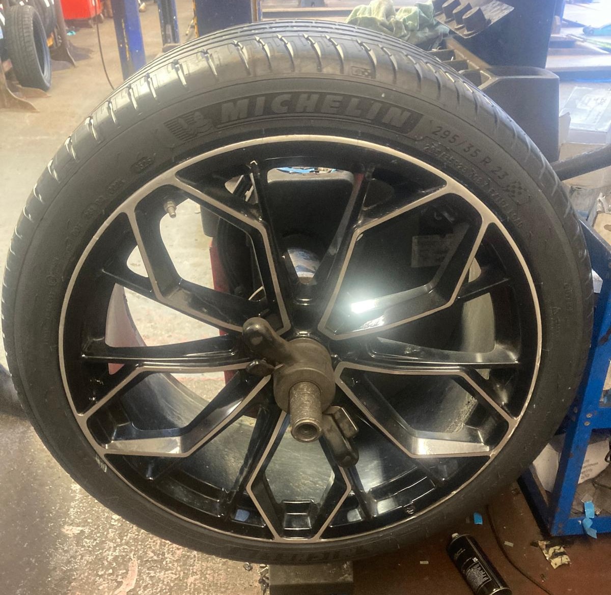 Saturday mornings at Pellon Tyre and Autocentre often start lively, but this one began particularly brisk. The first job through the door was a BMW SUV owner who had ordered a 295/35R23 Michelin Pilot Sport SUV tyre directly through our website, www.pellontyres.co.uk, and arrived bright and early for fitting.