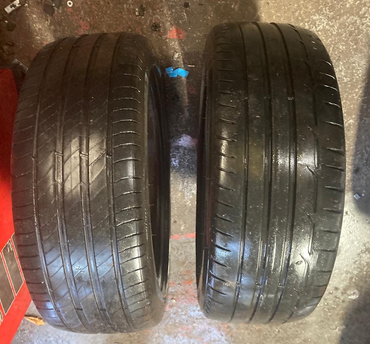 Adam got straight to work, and it didn’t take long to see the issue. The front tyres were worn enough to justify replacement. Nothing dramatic, just honest wear – which is exactly what you want to see rather than cords showing or bulges waiting to burst.