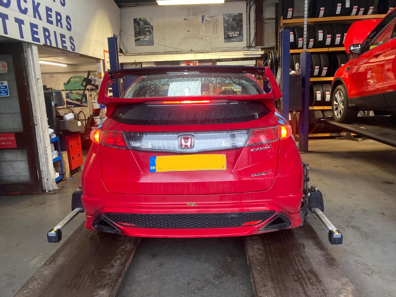 When we carried out the Civic’s alignment check on our modern laser alignment system, it didn’t take long to spot the issue. The readings showed that one of the rear wheels was out of spec, causing the uneven wear that the customer had noticed.