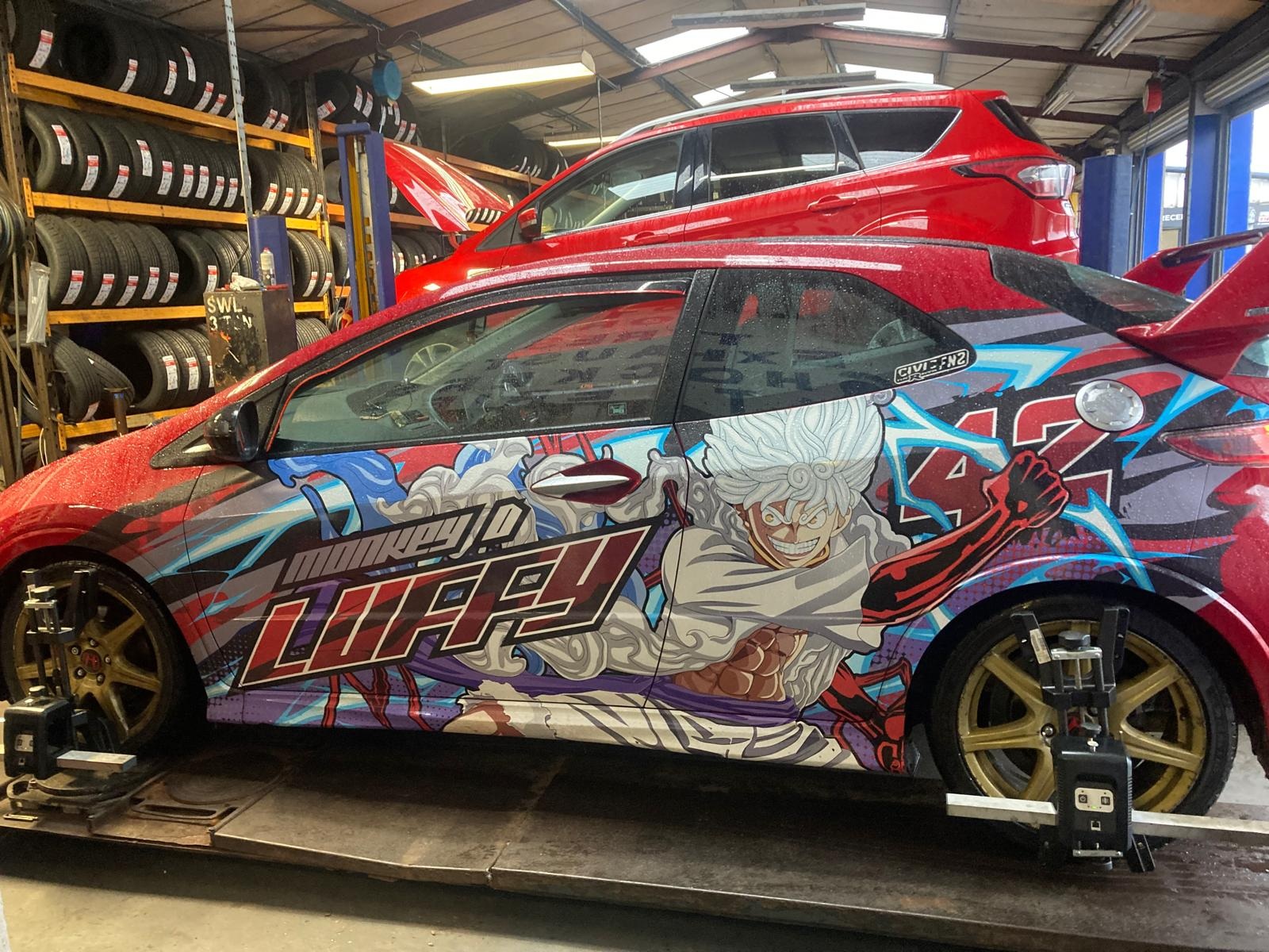 We always recommend checking all four wheels, even if the problem seems to be on one corner. Cars like the Honda Civic, with independent rear suspension, can easily go out of line at the back as well as the front.