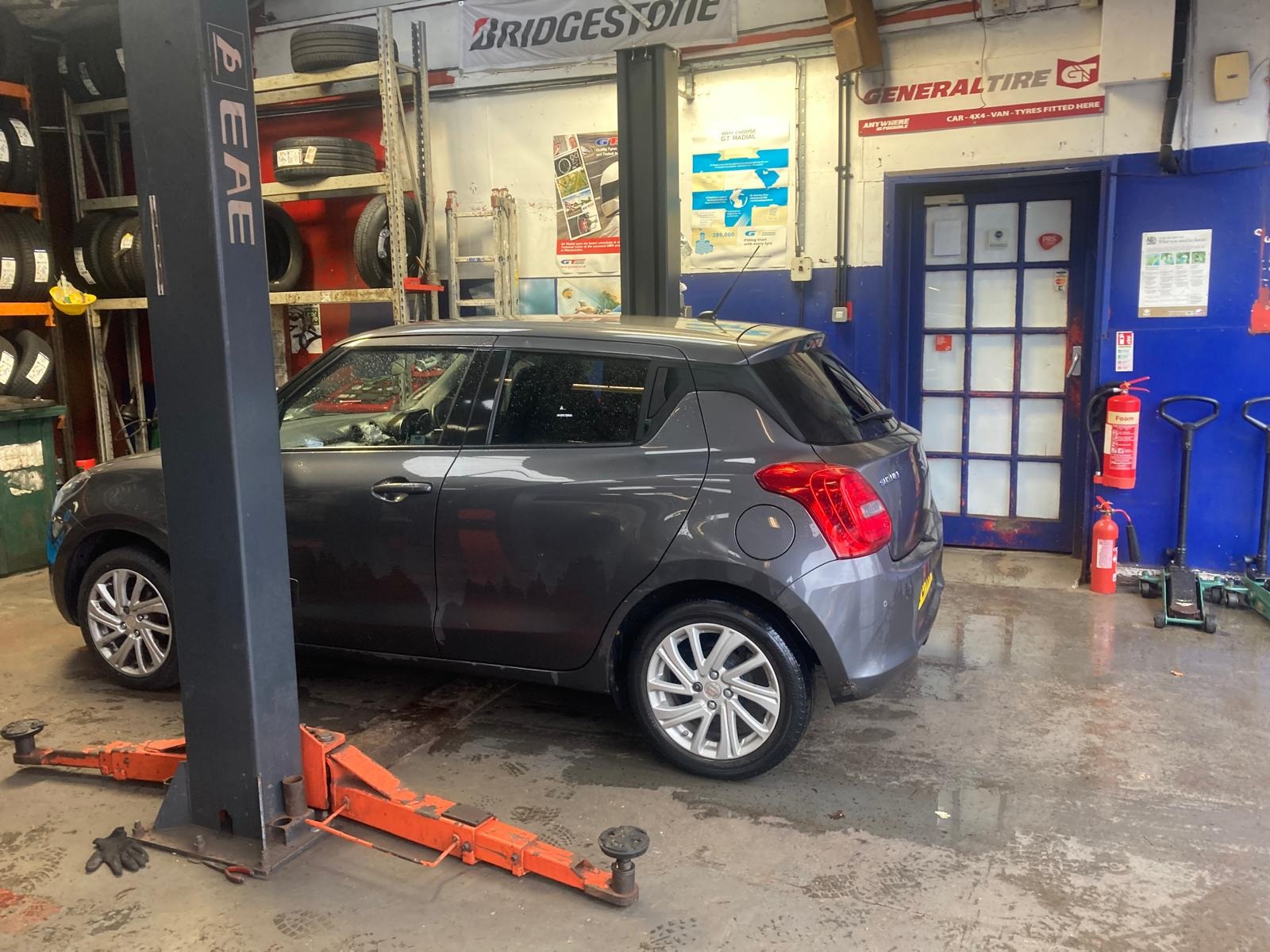 Ben soon spotted that two of the tyres were below the legal limit, and because the Swift is a light little car, good tread depth makes a massive difference to grip, especially in wet or snowy conditions. He also noticed the alignment was slightly out — hardly unusual given the potholes we dodge every day in Calderdale!