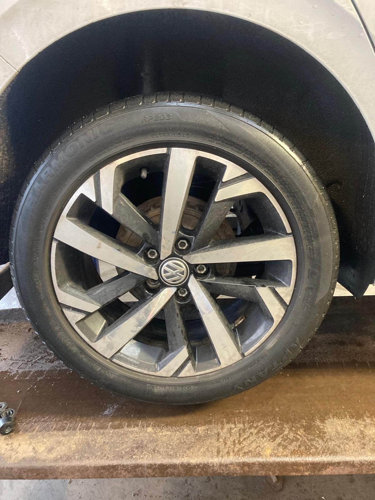 This white VW Golf is a good example of how we like to work at Pellon Tyres. The customer didn’t have an appointment – she simply pulled in for a free tyre check. We popped the car on the ramp, checked all four tyres, and then talked through the options.